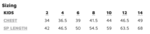 Chest 34 36.5 39 41.5 44.5 47.5 50